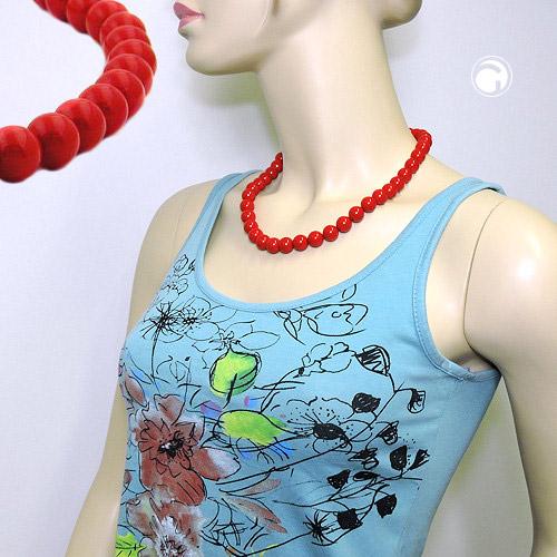 Diese zeitlos schöne klassisch gefädelte Halskette besteht aus 12mm großen roten glänzenden hochwertigen Kunststoffperlen und ist mit der auffälligen roten Farbe ein wunderbarer Kontrast zu hellen und dunklen Farben und die perfekte Ergänzung zu bunten Kleidungsstücken. Die 50cm lange, im Volksmund Kullerkette genannte Perlenkette wird mit einem silberfarbenen Karabiner plus Verlängerungskettchen aus eloxiertem Aluminium verschlossen. Alle Bestandteile dieser Modeschmuck-Kette wurden in Deutschland produziert und die Kette selbst in Handarbeit – made in germany – fertiggestellt.